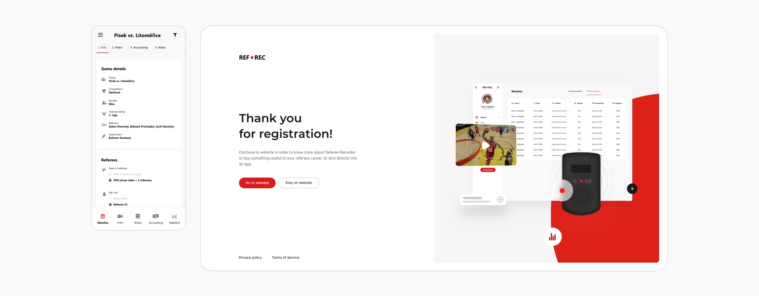 REFEREE RECORDER je Smart App & Device platforma, která nabízí chytré řešení pro zaznamenávání důležitých momentů z každého zápasu. Tento ojedinělý software vznikl od rozhodčího pro rozhodčí, aby už nemuseli svůj volný čas trávit stříháním videí.